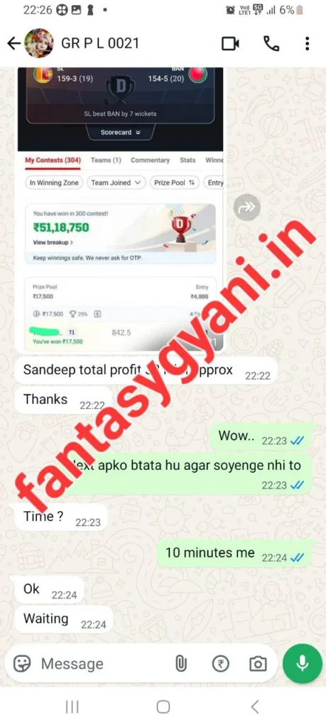 Hi, I'm Sandeep Tiwari, founder of Fantasy Gyani. I started playing Dream11 back in 2015, when it was still new. Like many others, I faced heavy losses until 2019. I was using only my cricket knowledge, but I later realized that gut feeling is just as important. From 2020 onwards, I made a strong comeback. Today, I manage 100+ personal users who earn regular profits every month through my guidance. When I saw that many fake experts were fooling users online, I decided to build something genuine. That’s when I started Fantasy Gyani with one clear mission: To help real users who are in loss or who are passionate about fantasy cricket – and help them win big & earn lakhs! You can join any of our Silver or Diamond plans. No matter which one you choose – 🎯 I give my best teams with personal support that gives you a whole new winning experience in fantasy cricket.